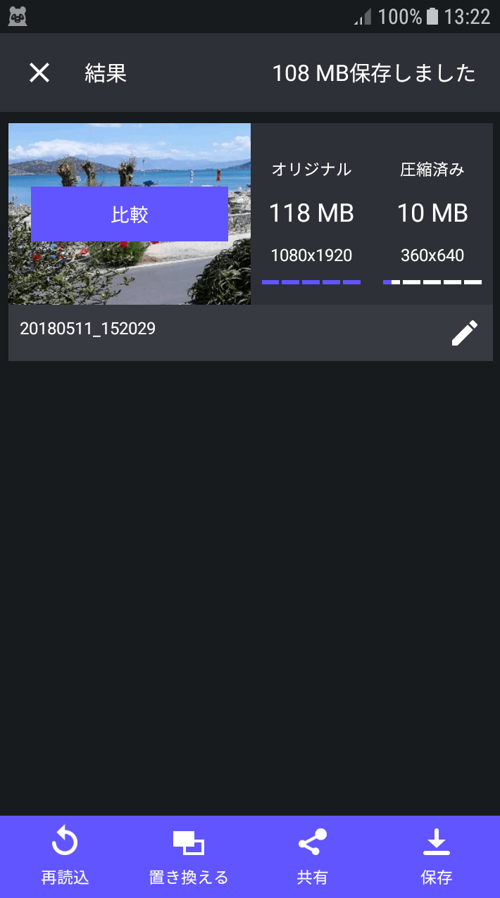 3.圧縮した動画を自分の端末に保存したり、誰かと共有したりすることができます。